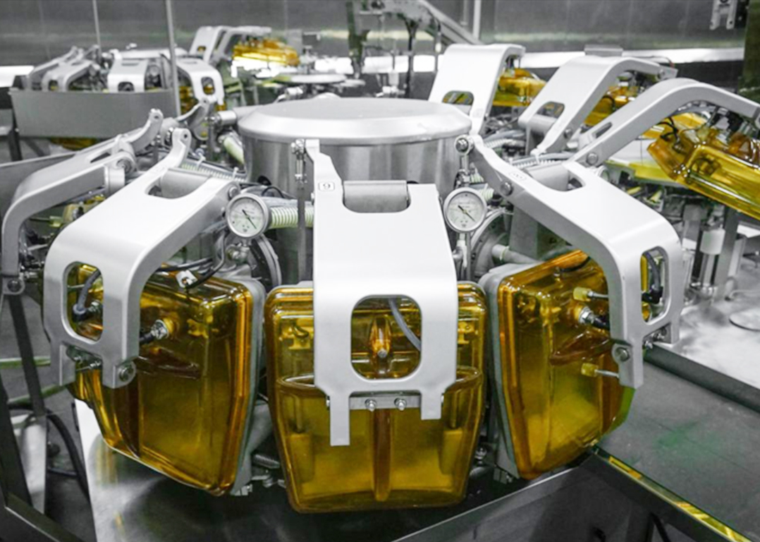 自動化灌裝設備的高效率運作,全流程無人為手動操作,產品計量精準且統一,真正做到食品安全的標準化生產。自動化灌裝系統主要用于醇香、藤椒等牛油類復合底料和油料的制作流程中,整個運輸和罐裝過程衛生又安全。